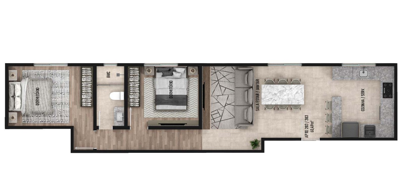 Apartamento 1 suite + 2 dorm na Vila Operária